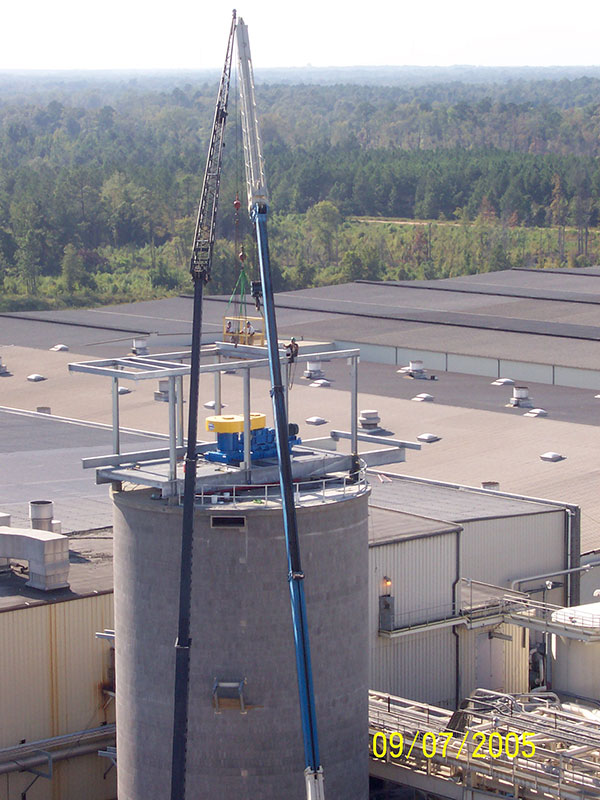 Although the side entry installation would have been a lower capital expenditure, it would have required a total installed power of 500 hp. Conversely, the top entry installation only required 125 hp to perform the same task, an operating/ maintenance payback which is still being realized today. The absence of a shaft seal reduced costly maintenance and eliminated any flush water requirements for a sealing arrangement.